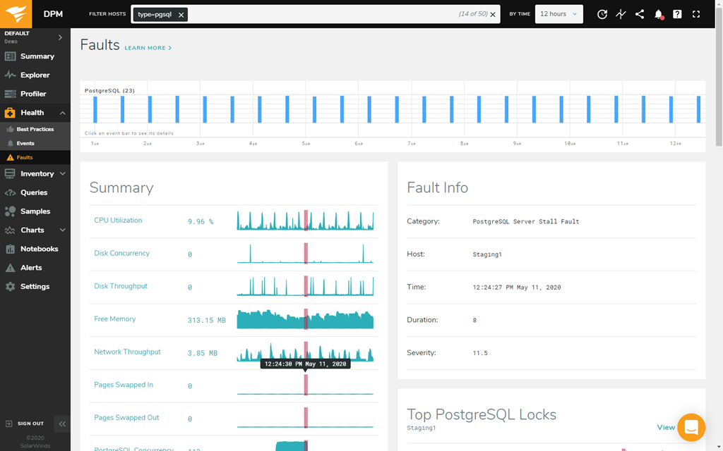 O SolarWinds Database Performance Monitor oferece uma visão geral da integridade geral do banco de dados e oferece recomendações para melhorar ainda mais a execução do seu banco de dados.